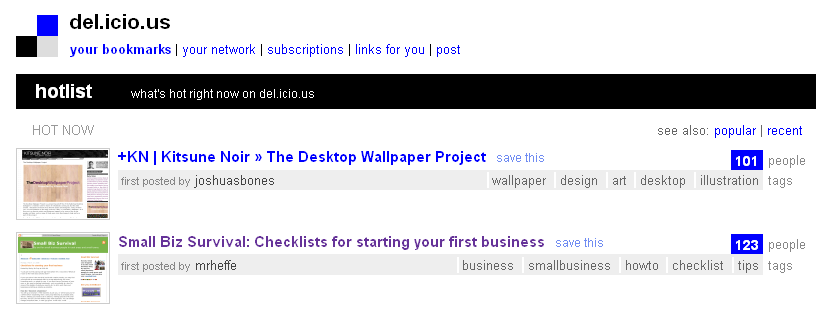 My friend Chris suggested the post at SXSW. I got some help from Maesz, and we wrote it up. Chris liked the post, bragged about it, and Lifehack picked it up from there. That put us on the Popular list at (what was at the time still called) del.icio.us. As of right now, the workshop I proposed based on this post is still in consideration for SXSW 09. (knock wood, hold thumbs, cross your fingers)